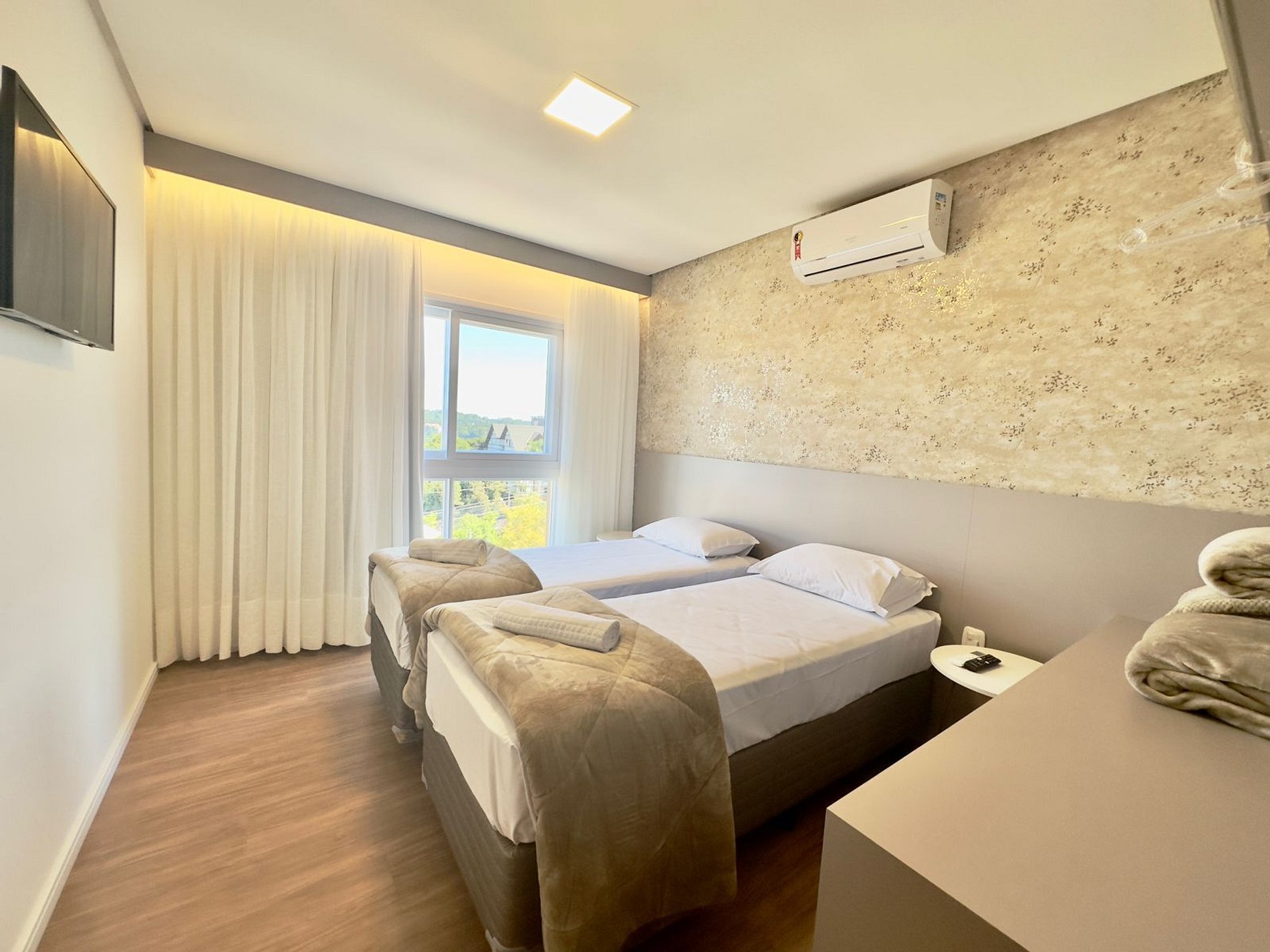 Estadia perfeita! Ap realmente novinho e com tudo que se precisa. Localização ótima, tranquilo, mas dentro do Centro. Split nos quartos e na sala. Roupas de cama novinhos e confortáveis, toalhas impecáveis. Tudo absolutamente limpo e arrumado. Decoração clean. Tv nos 2 quartos e sala. Internet ótima. Cozinha super equipada. Vista bonita. Excelente relação custo-benefício. Voltaremos.