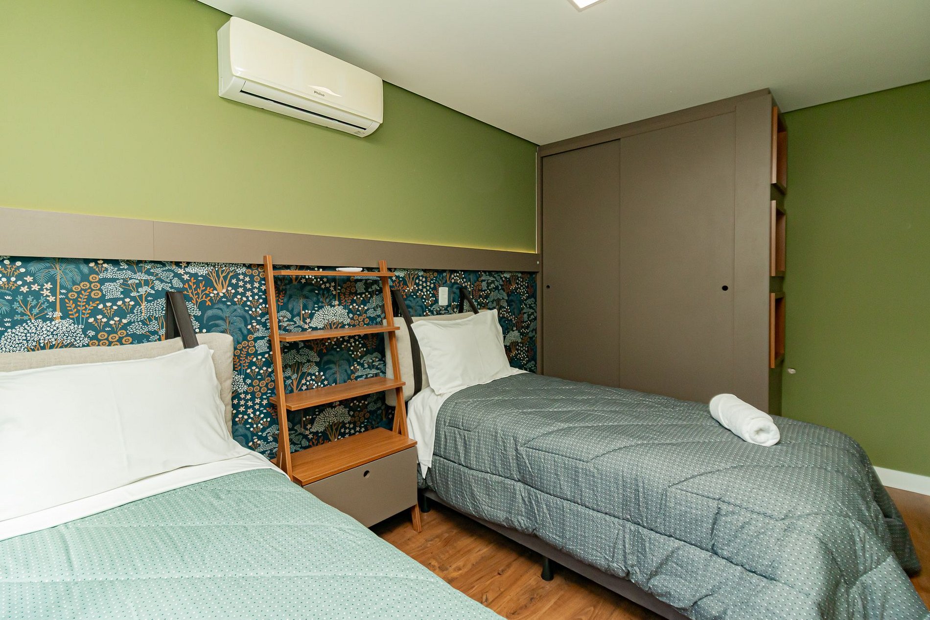 2 Suítes Aconchegantes: Privacidade e conforto garantidos para todos os hóspedes. Obs: Uma das camas de solteiro é uma cama auxiliar