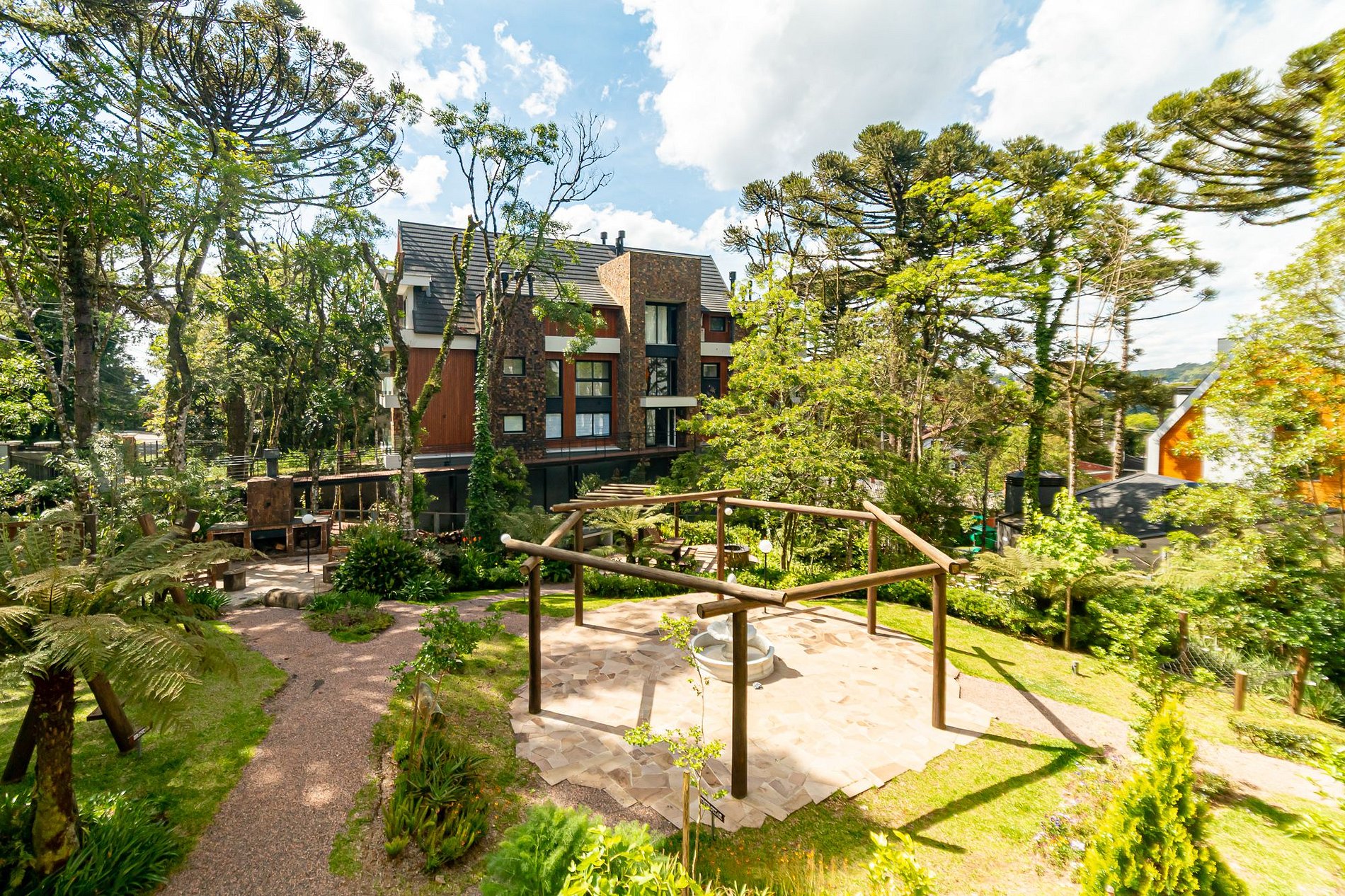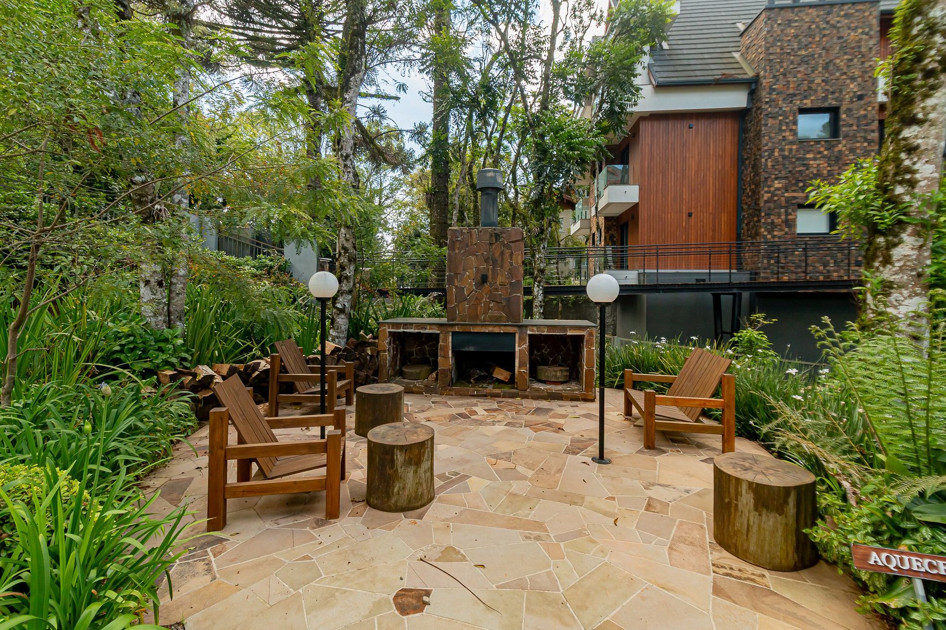 Área Externa com Lareira: Ideal para se aquecer e desfrutar de um bom vinho nas noites frias de Gramado.
