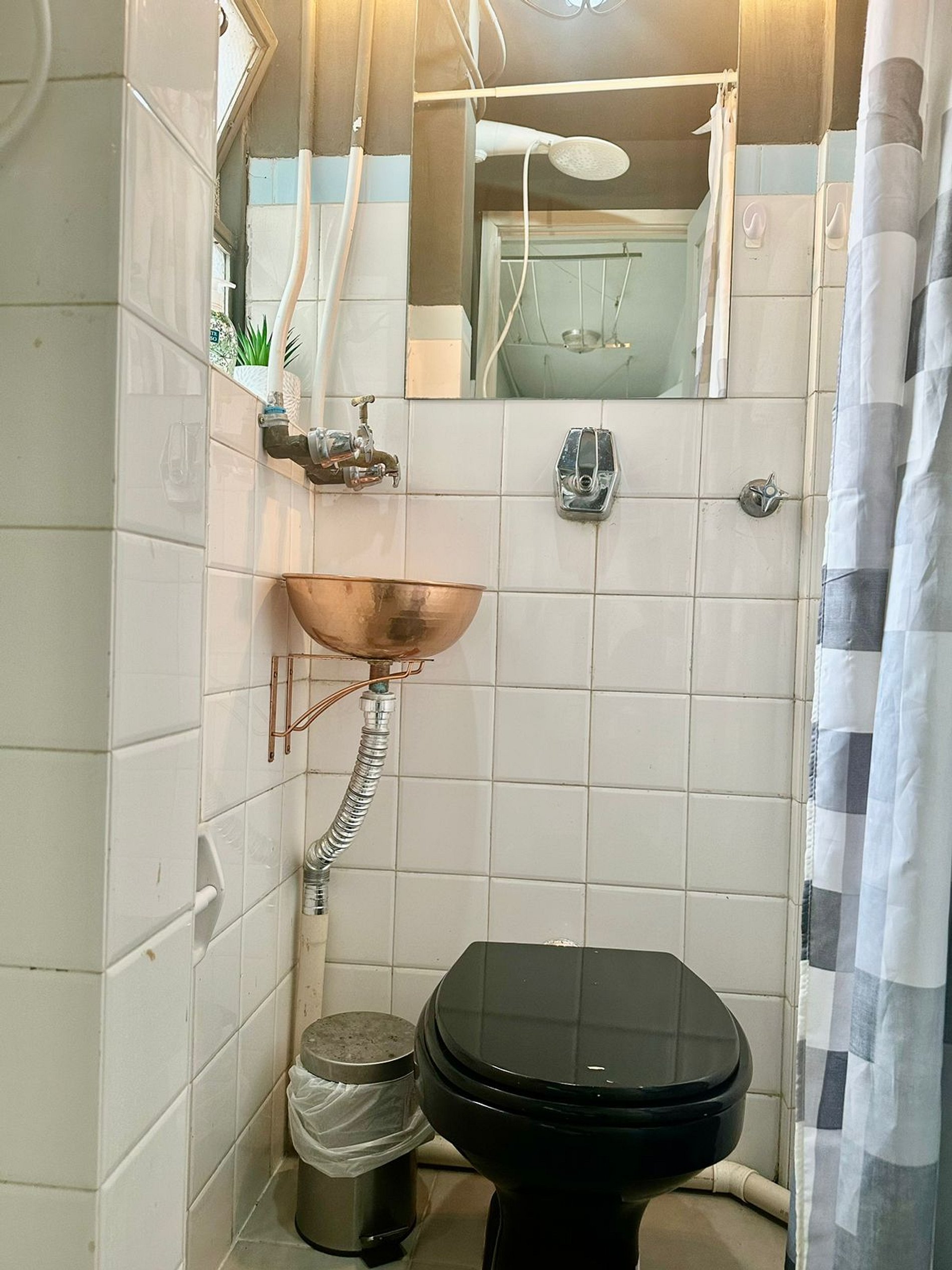 falta de chuveiro para um apartamento que se dispõe a atender até oito hospedes.