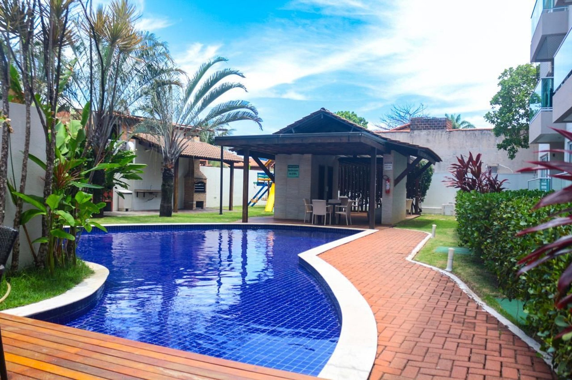 Piscina, churrasqueira e parquinho