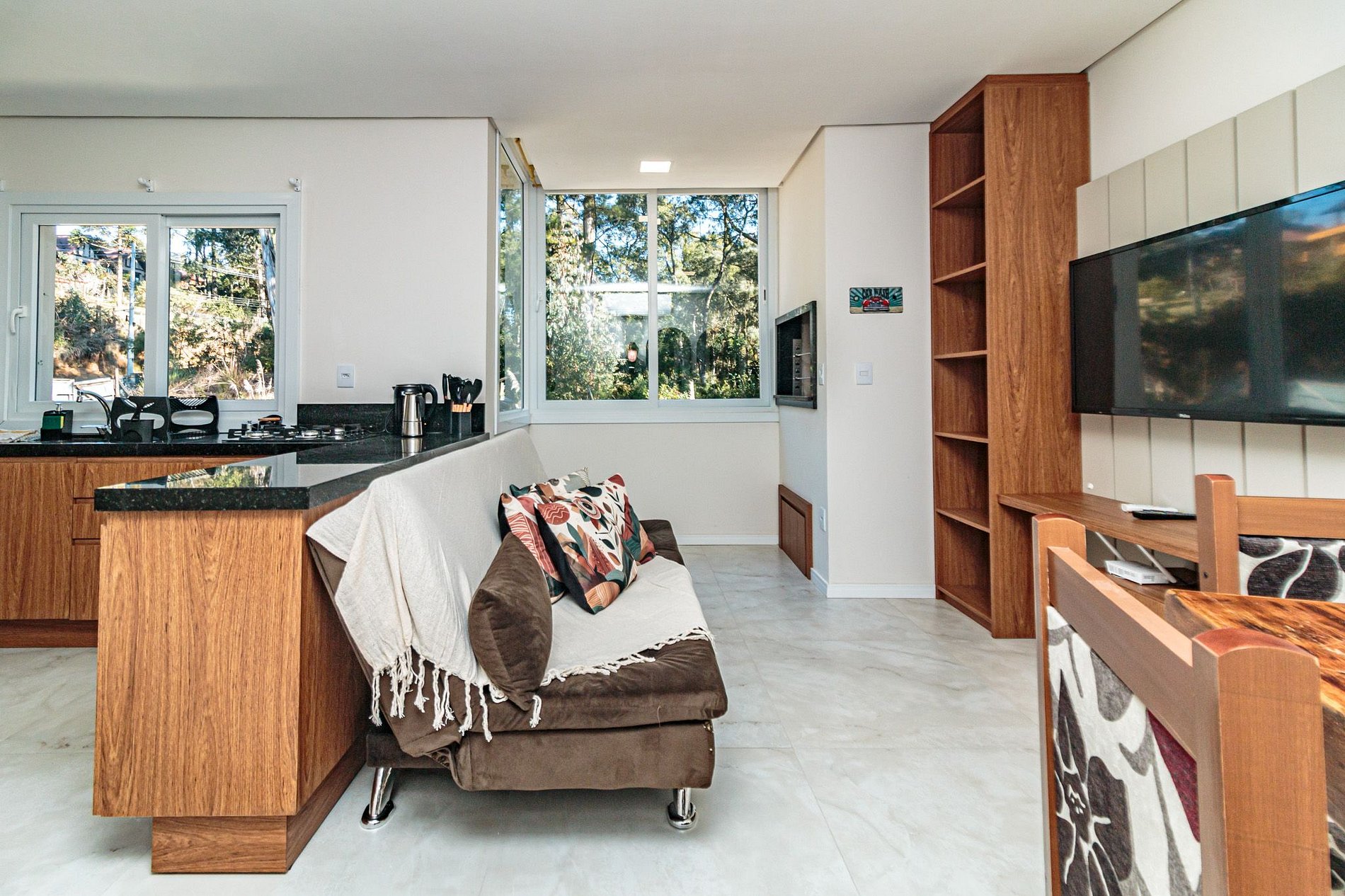 Encante-se com este apartamento de 1 dormitório localizado no tranquilo e arborizado bairro Ipê Amarelo, em Gramado, em meio à natureza e com atmosfera serena. Ideal para casais, amigos ou pequenas famílias (até 4 pessoas), oferece conforto, praticidade e fácil acesso às principais atrações da cidade, como o Lago Negro — tudo a poucos minutos de carro
